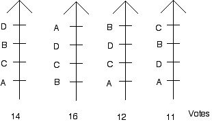 i. Construct a matrix whose rows and columns are labeled by the alternatives (candidates) and where the (i, j) entry is the number of voters who preferred candidate i to candidate j.